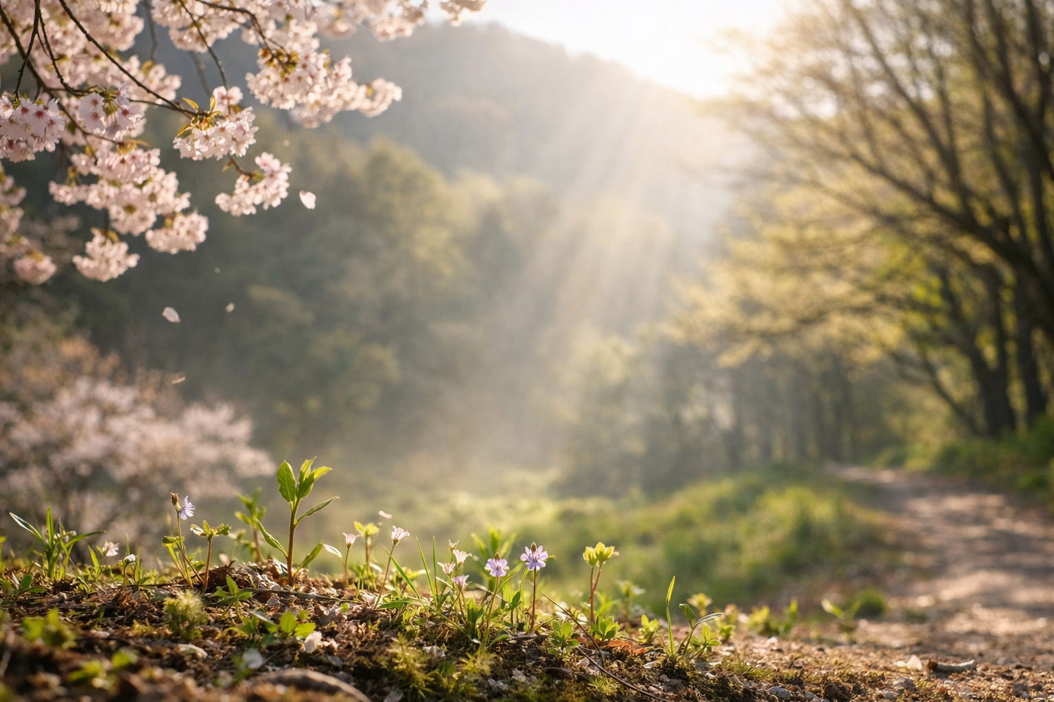 春の光が裏山の斜面にやわらかく差し込み、冬の間は沈んでいた土の色が、少しずつ明るさを取り戻していました。足もとには、まだ小さな芽が点々と顔を出し、目立たぬまま季節の移ろいを知らせてくれます。